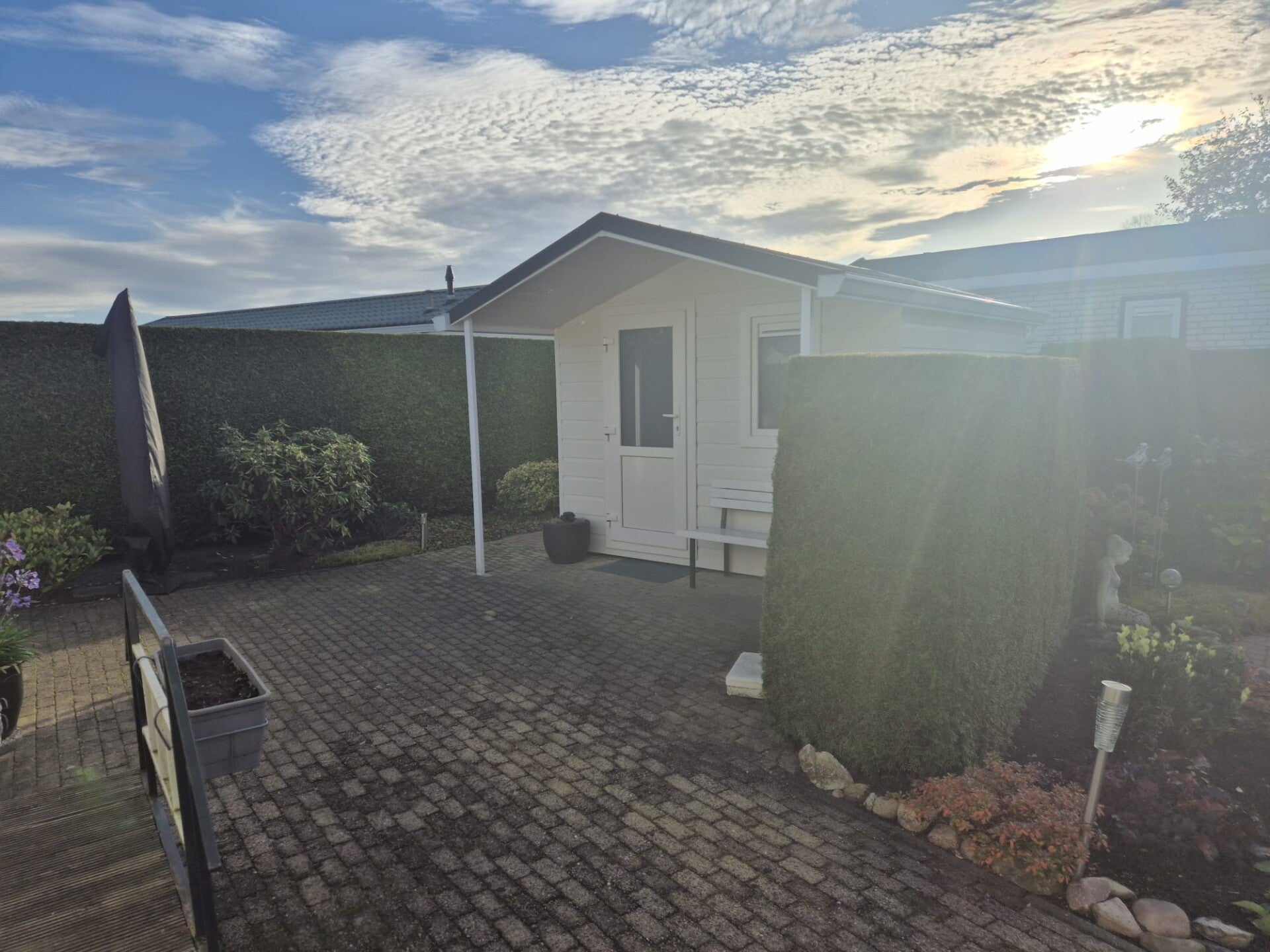 - De chalet is buitenom voorzien van kunststof